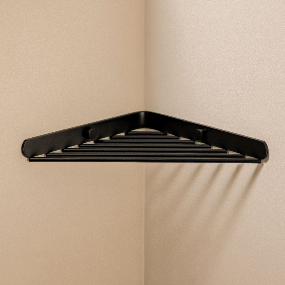 LOGIC nurga dušikorv 180x180mm, matt musta viimistlusega. Toodetakse ka harjatud roostevaba.