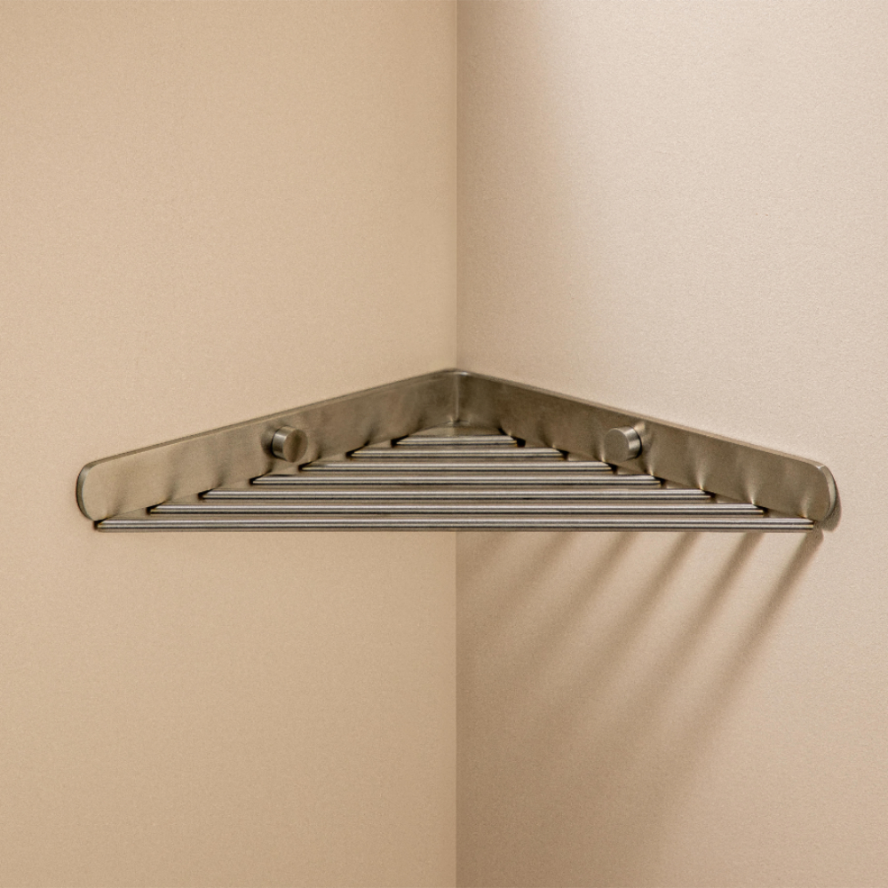 LOGIC nurga dušikorv 180x180mm, harjatud roostevaba. Toodetakse ka matt must viimistlusega.