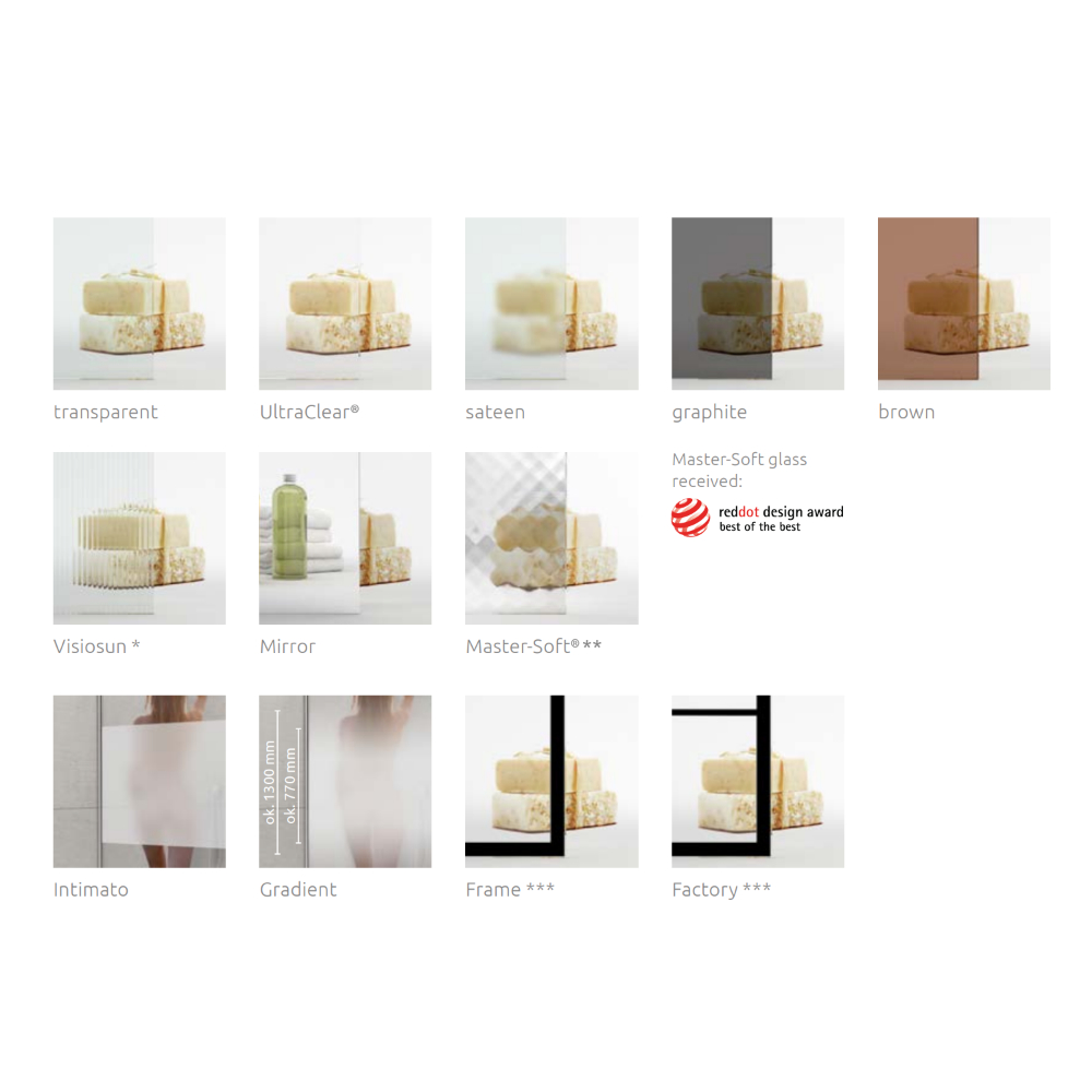 NES sarja iseloomustab kaasaegne disain ja elegants oma universaalsuse ja teiselt poolt originaalsusega. Mudelite mitmekesisus võimaldab kasutada vannitoas erinevaid stiile. Selle seeria eeliseks on spetsiaalne süsteem, mis võimaldab seina kumerust tasandada kuni 15 mm. NES sarja dušiklaase valmistatakse 6mm ja 8 mm karastatud klaasist. Väga suur profiilide viimistluste valik.