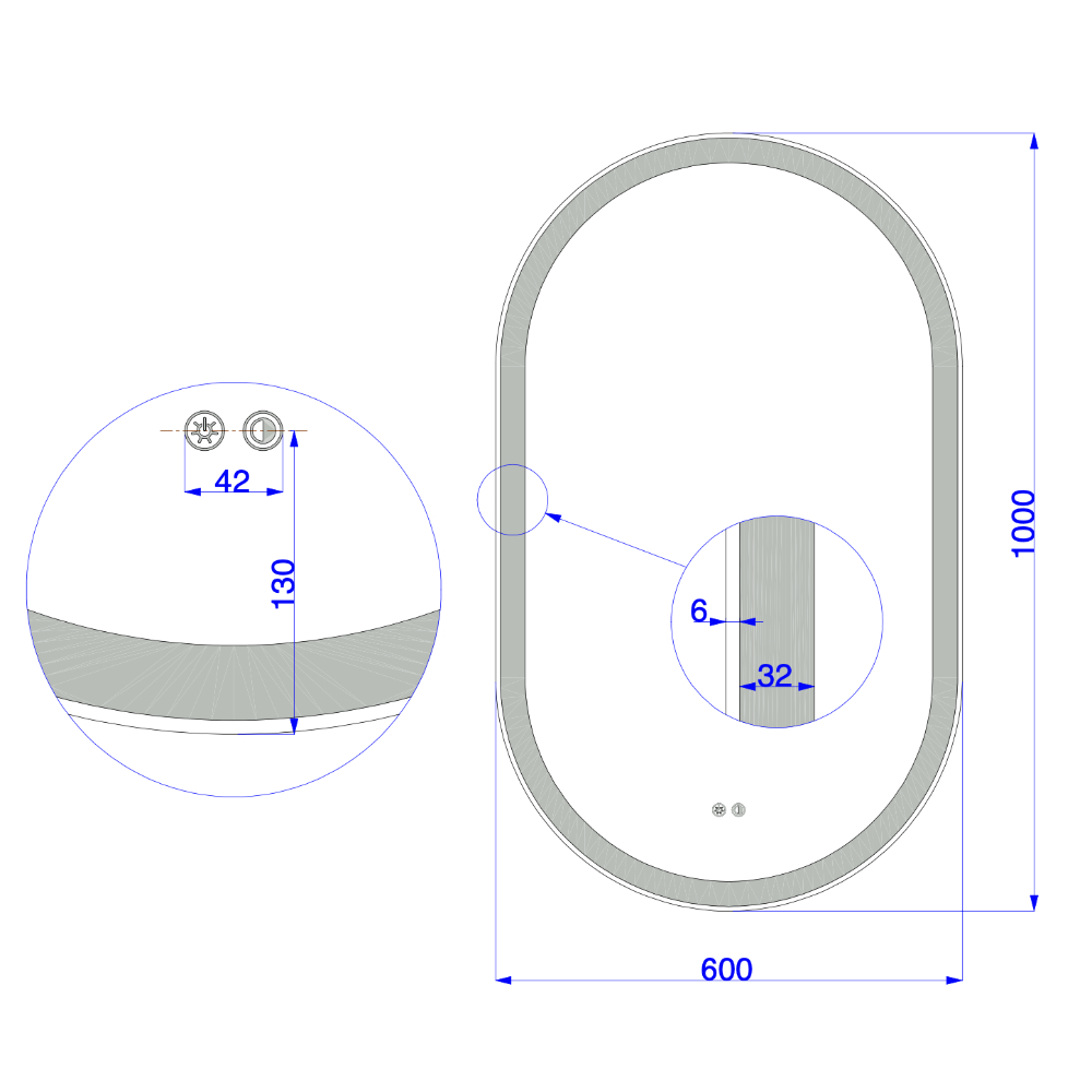Ovaalne LED sisevalgusega peegel CAFE, mõõduga 60x100cm. Smart puutelülitid – üks on/off/hämardamine ja teine värvi muutmiseks soe/külm (3000K – 6000K). Kinnitused võimaldavad nii vertikaalset kui horisontaalset paigaldust. Sobib niiskesse ruumi, IP44.