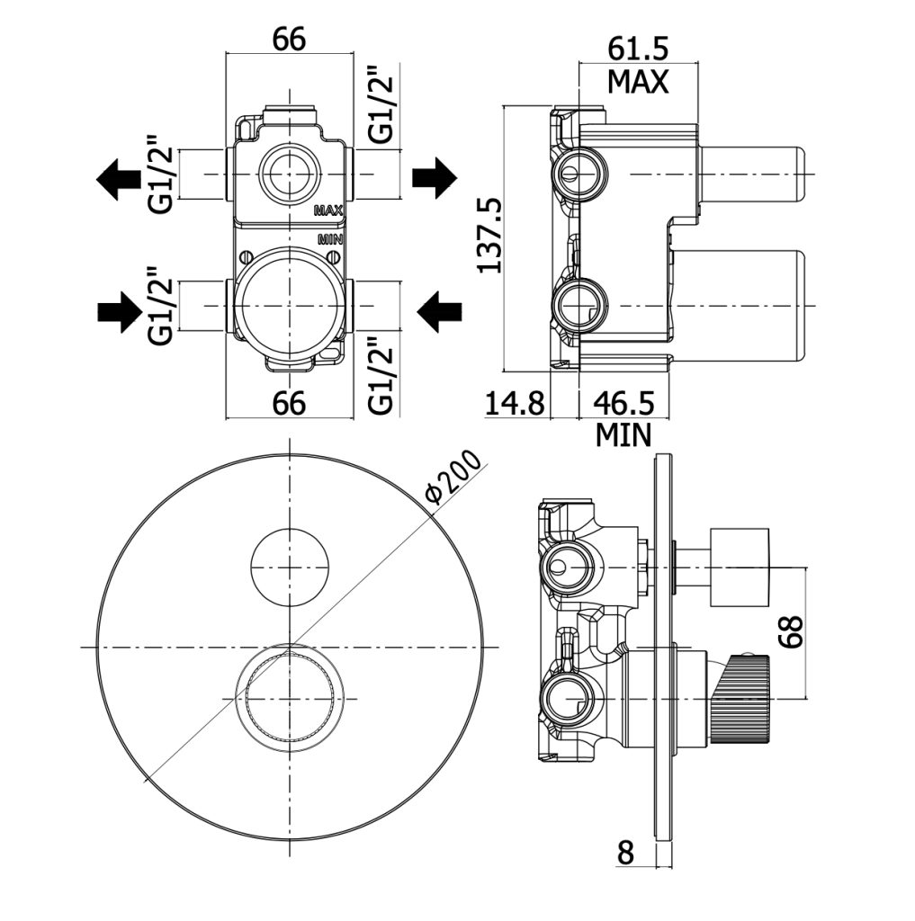 Seinasisene 2-väljundiga JO dušisegisti, kroom viimistlusega. Toodetakse ka matt musta viimistlusega. Segisti sisaldab seinasisest elementi.
