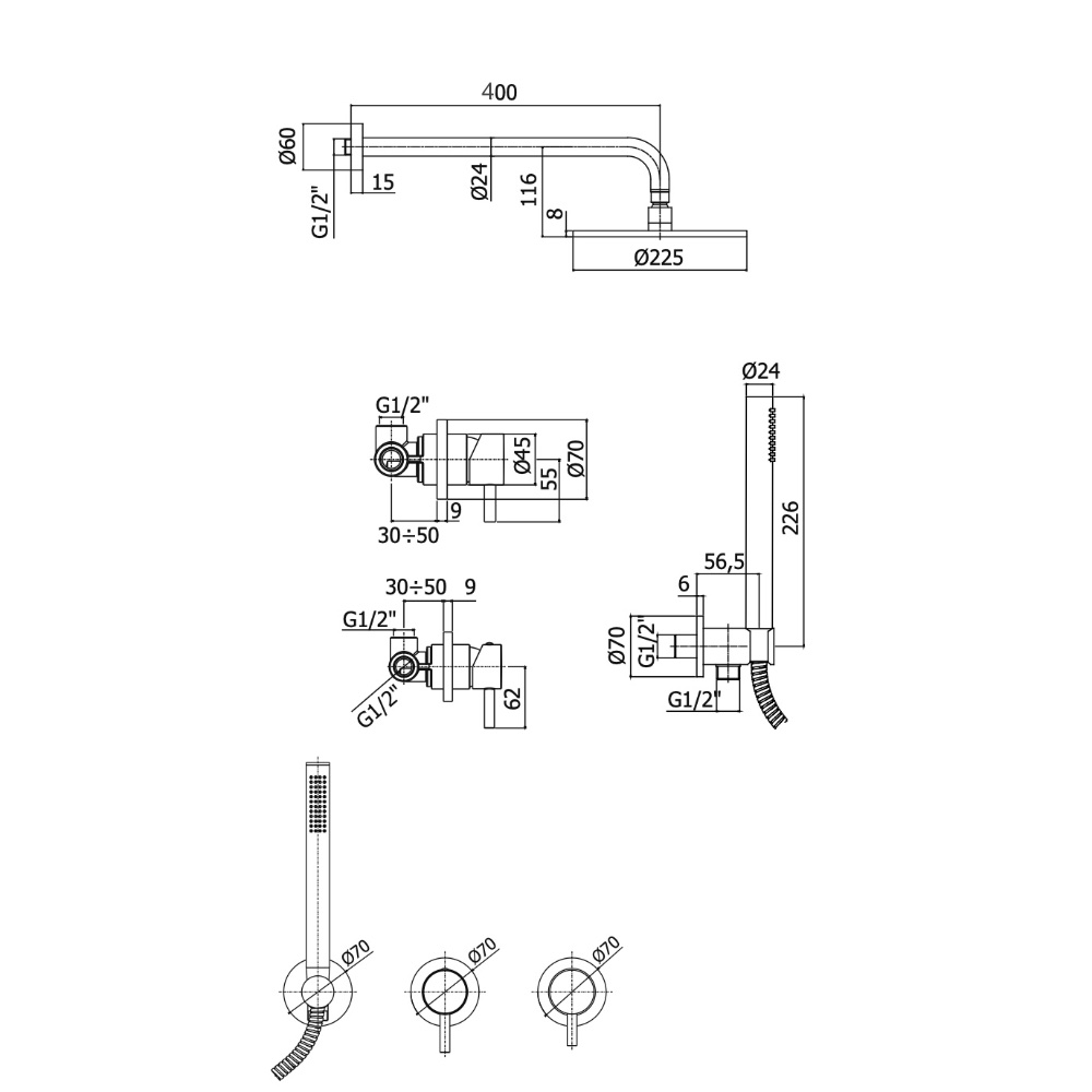 – käsiduši komplekt Tondo, kate Ø 70mm