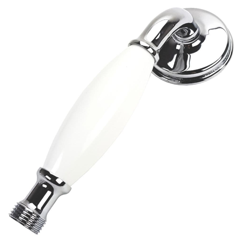 Kroom viimistlusega, keraamilise käepidemega käsidušš Retro. Sobib 1/2″ ühendusega voolikule.