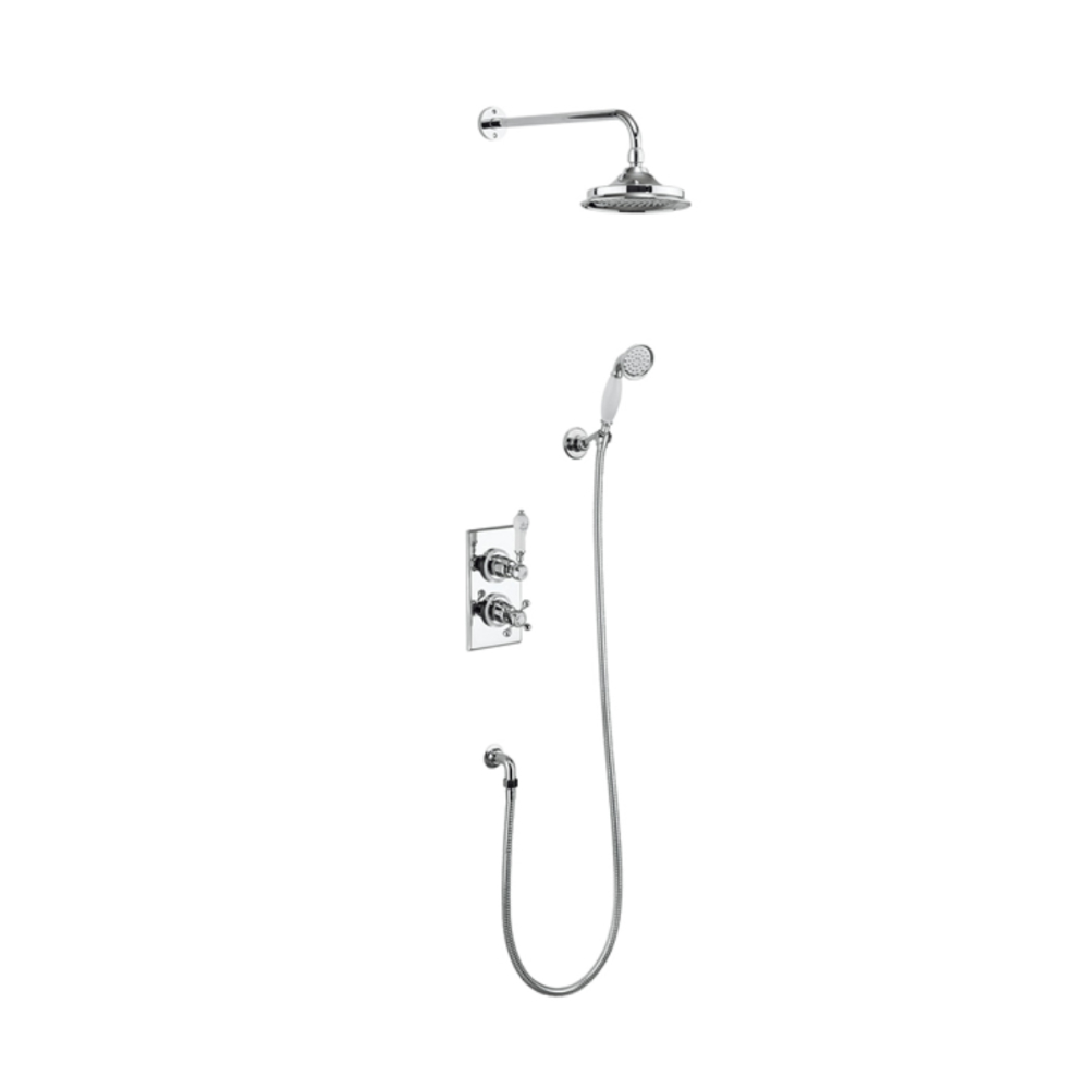 Klassikaline termostaat dušisegisti TRENT komplekt, kroom viimistlusega. Komplektis sisaldub – seinasisene 2-väljundiga TRENT termostaat dušisegisti Claremont keraamilise käepidemega, vihmadušš 236mm + seinatoru 394mm ja käsiduši komplekt (150cm voolik, veevõtu kand 1/2″, käsidušš ja käsidušši hoidik). Segisti sisaldab seinasisest elementi.
