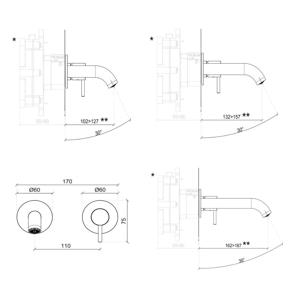 Seinasisene valamusegisti komplekt sisaldab – seinasisene boks + seinapealne segisti osa 155mm tilaga, harjatud nikkel viimistlusega.