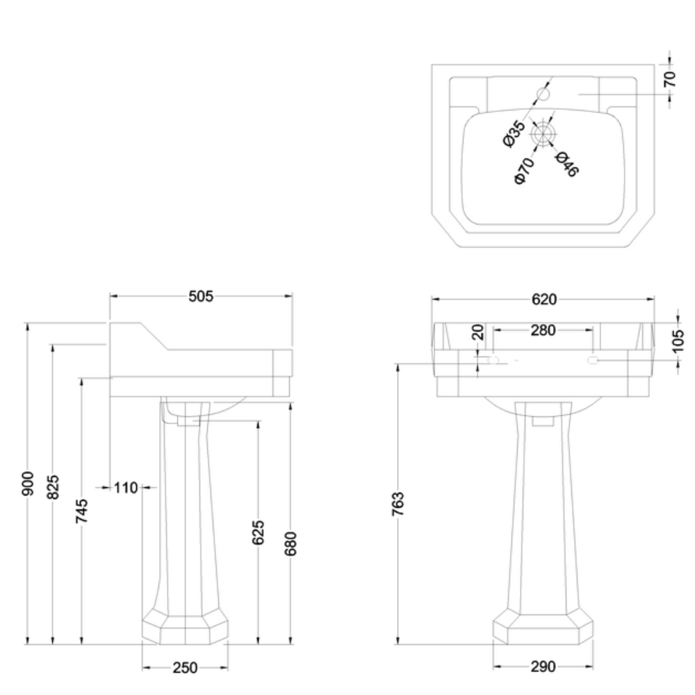 Seinakinnitusega keraamiline valamu Edwardian 61x51cm, üks segistiava. Segisti ei kuulu hinna sisse. Lisada saab keraamilist valamujalga, kroom viimistlusega raam/konsooli.