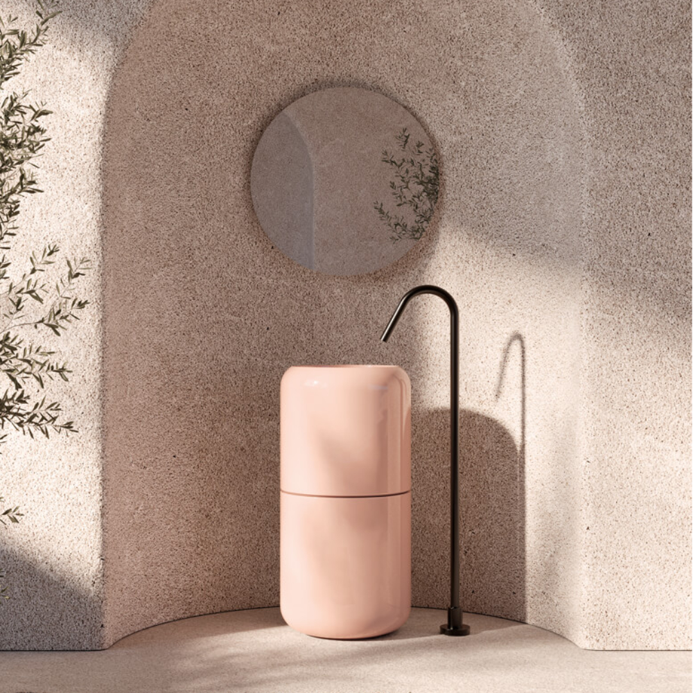 Keraamiline põrandapealne valamu PETRA ø42 h85cm, läikiv roosa (Pink Glossy 039) viimistlusega. Valamu on komplekteeritud integreeritud click-clack keraamilise kattega põhjaklapiga, anti-backflow sifoonisüsteemiga ja universaalse kroomitud roostevabast terasest äravoolutoruga põrandasse (tellimisel äravool seina). Võimalus komplekteerida messingist käterätipuuga (erinevad viimistlused – matt valge ja must, kroom, pronks, kuld ja RAL toonid).