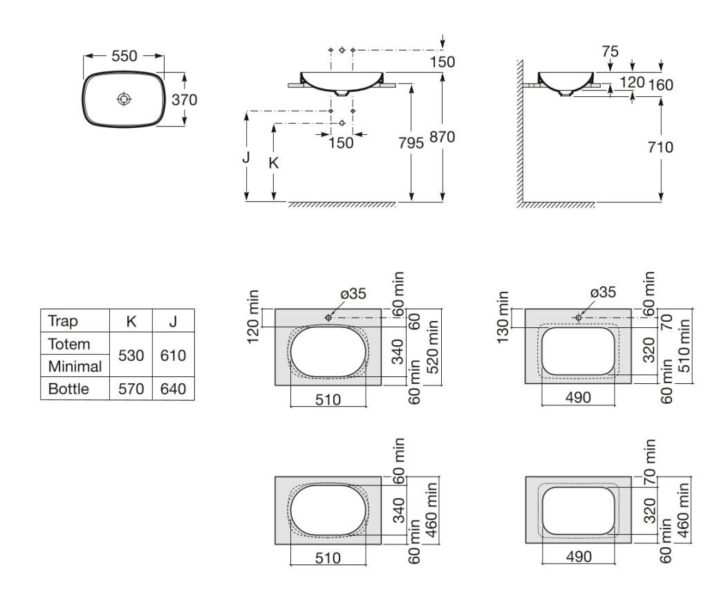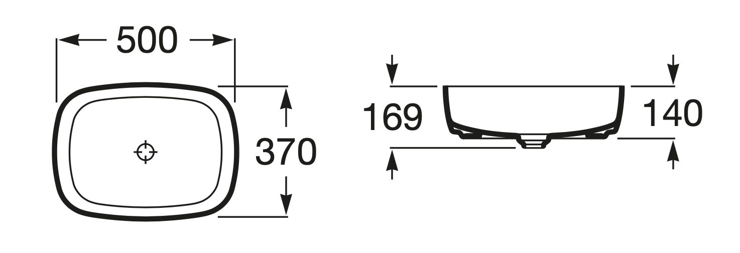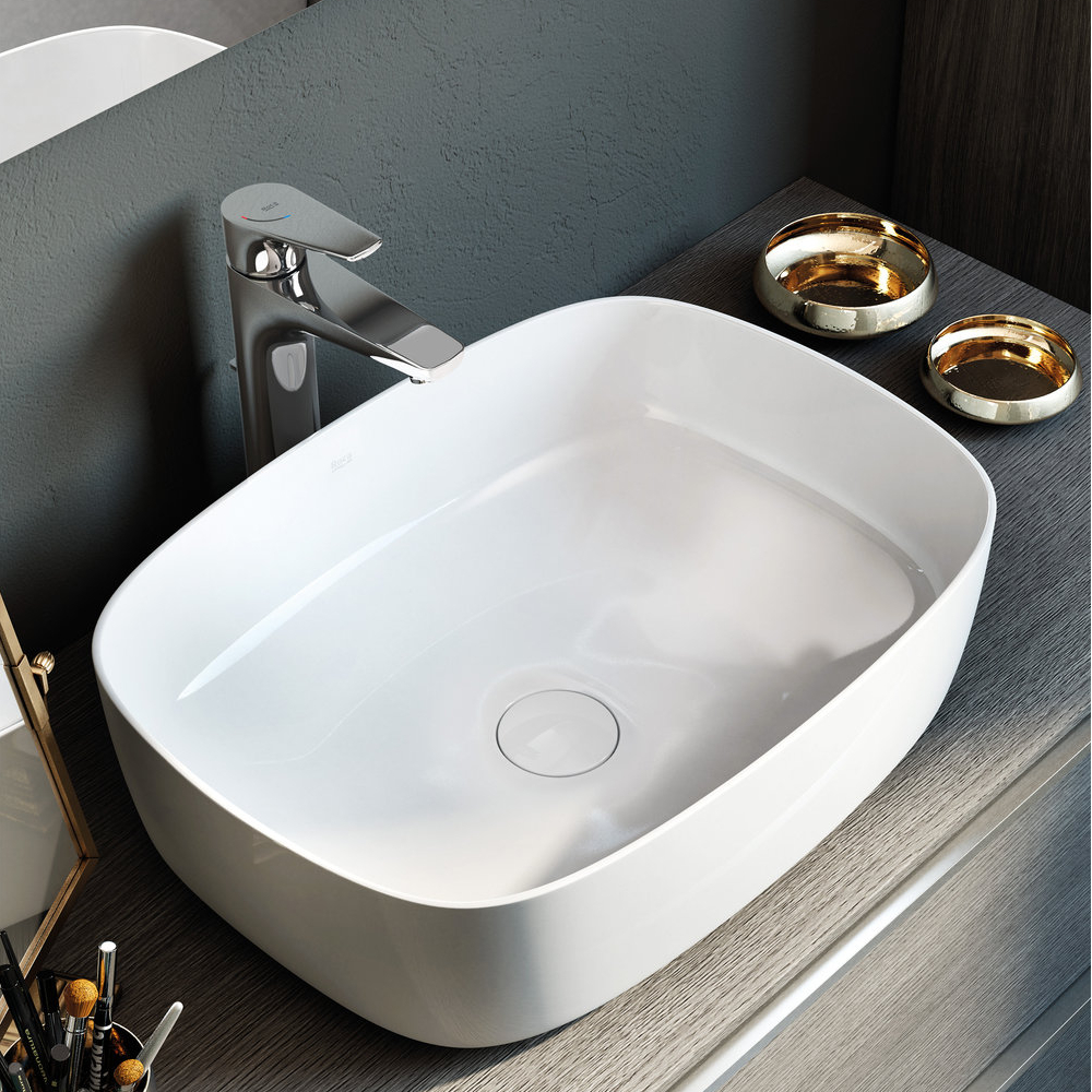 Tööpinna peale paigaldatav INSPIRA SOFT 370x500mm Fineceramic valamu koos keraamilise kattega põhjaklapiga. Valamu on ilma ülevooluta.