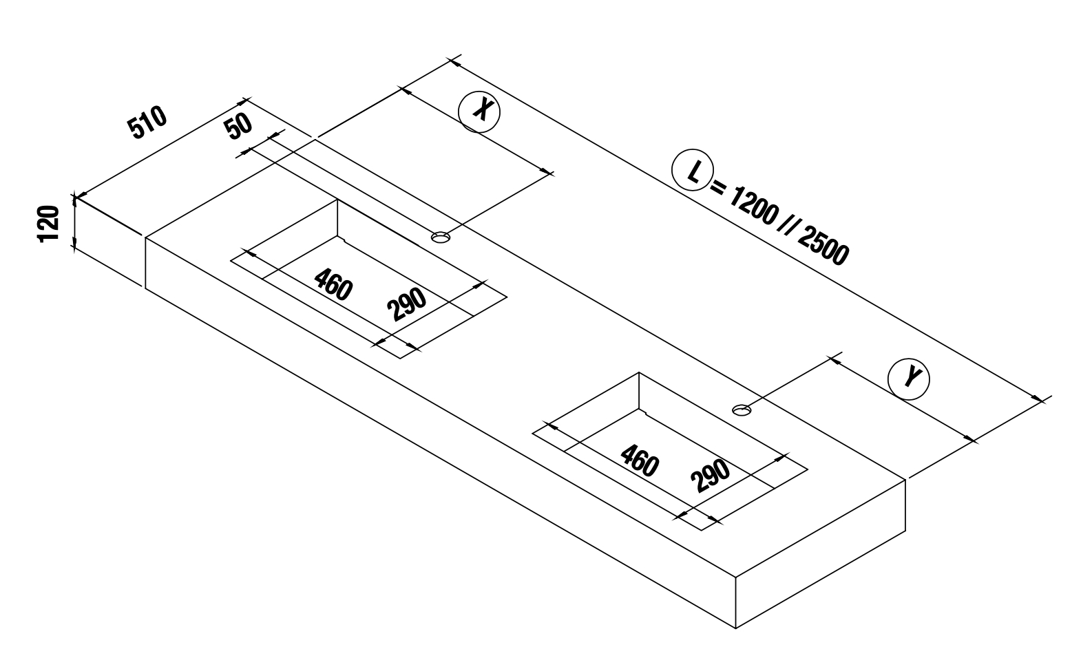 Eritellimusel veekindlast plastikust, mõõdus 120 kuni 140cm – 51x12cm valmistatav tööpind African Oak koos integreeritud kahe valamuga 460x290mm. Võimalik tellida koos segistiavaga või avata. Antibakteriaalse töötlusega tööpind, kaasas on reguleeritavad kinnitusklambrid. Toodetakse erineva viimistlusega – White Marble, Graphite Stone, Havana Oak ja Concrete. Tööpinna võimalik üldmõõt on 60cm – 250cm. Valamukapid tellitakse eraldi juurde.
