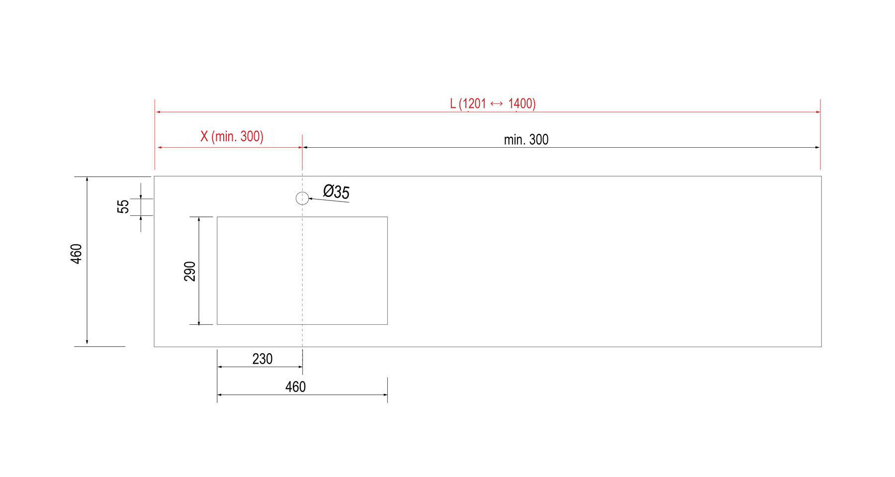 Eritellimusel veekindlast plastikust, mõõdus 120 kuni 140cm – 46cmx12cm valmistatav tööpind White Marble koos integreeritud valamuga 460x290mm. Võimalik tellida koos segistiavaga või avata. Antibakteriaalse töötlusega tööpind, kaasas on reguleeritavad kinnitusklambrid. Toodetakse erineva viimistlusega – African Oak, Havana Oak, Concrete ja Graphite Stone. Tööpinna võimalik üldmõõt on 60cm – 250cm. Valamukapid tellitakse eraldi juurde.