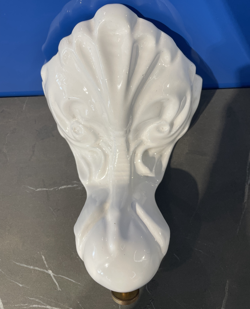 Valge välisviimistlusega vann ja valgete vannijalgadega komplekt laotoode.