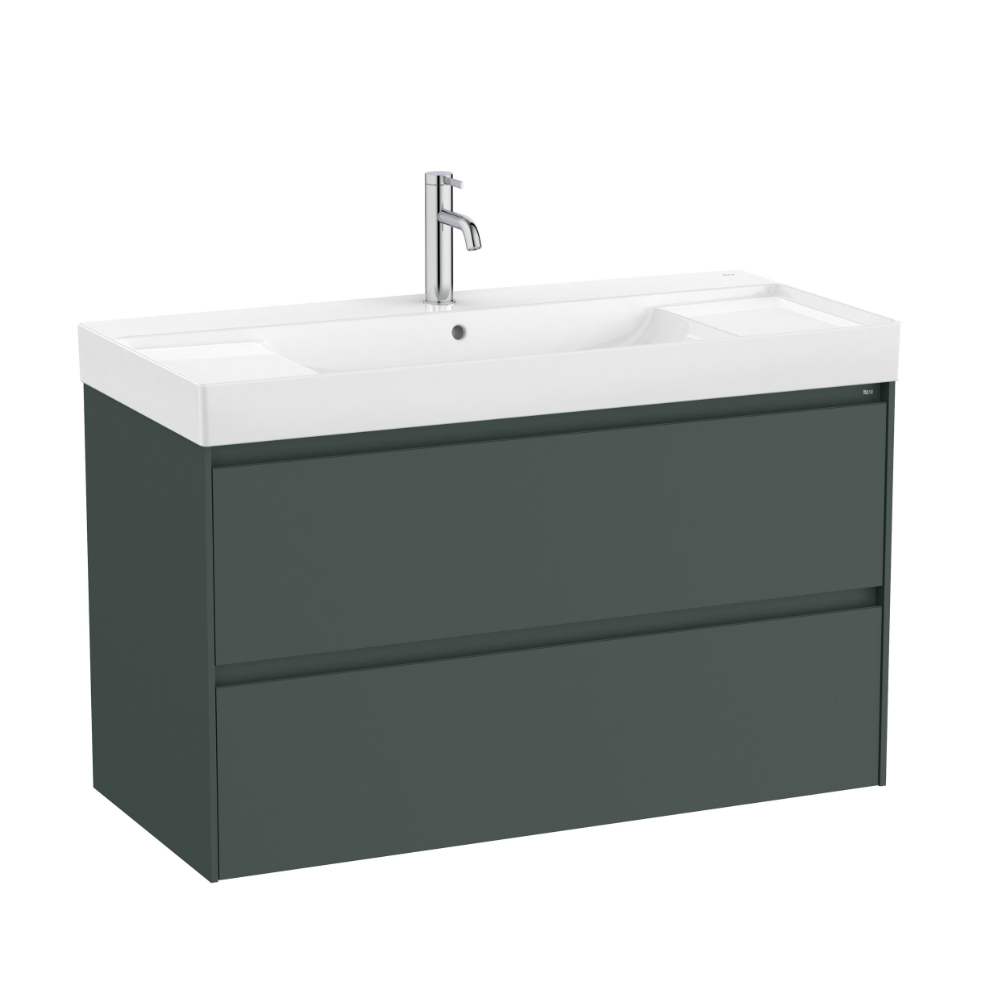 Seinakinnitusega UNIK ONA seeria 1000x460x645mm matt roheline 2-sahtliga valamukapi komplekt koos keraamilise FINECERAMIC ® valamuga. Valamukapp värvitud MDF, sahtlid vaikselt sulguva süsteemiga. Mööblit valmistatakse 5 erinevas toonis – matt valge, sand grey, puidu viimistlus – dark elm ja light oak. Segisti ja sifoon ei sisaldu.